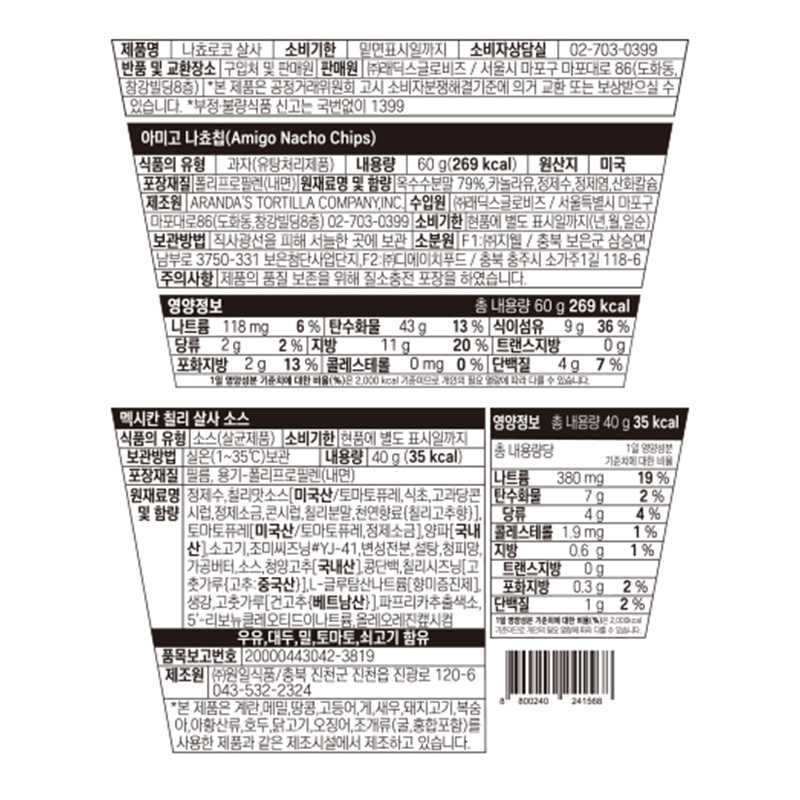 원재료명 및 함량