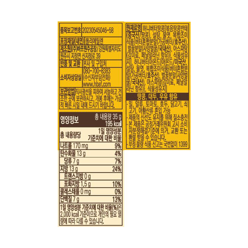 HBAF 허니버터아몬드&땅콩(35g/EA)
