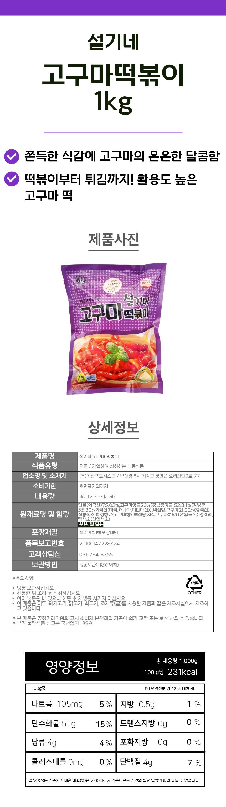 설기네 고구마 떡볶이 1kg 떡 이미지