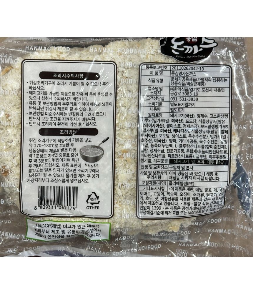 한맥 왕 등심 돈까스 1.25kg(250gX5입) 냉동 이미지
