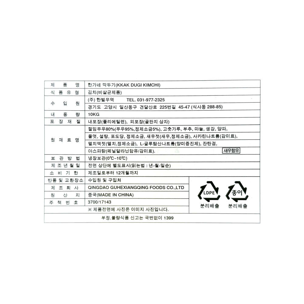 ❤️초특가❤️깍두기 김치 10kg 석박지