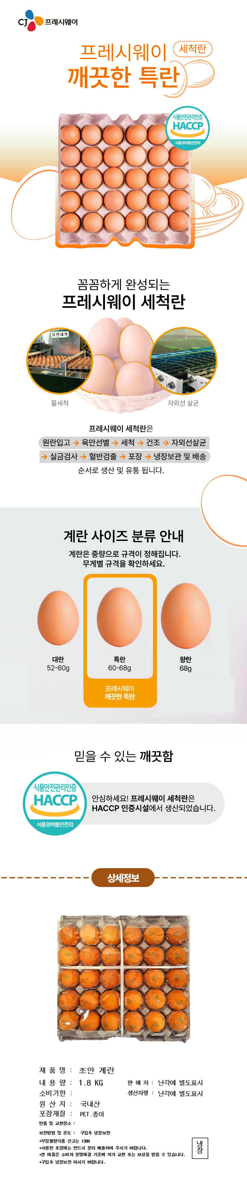 ♥첫구매♥조안 세척 특란 30입(4판묶음판매용) 계란 세척란 특란 이미지