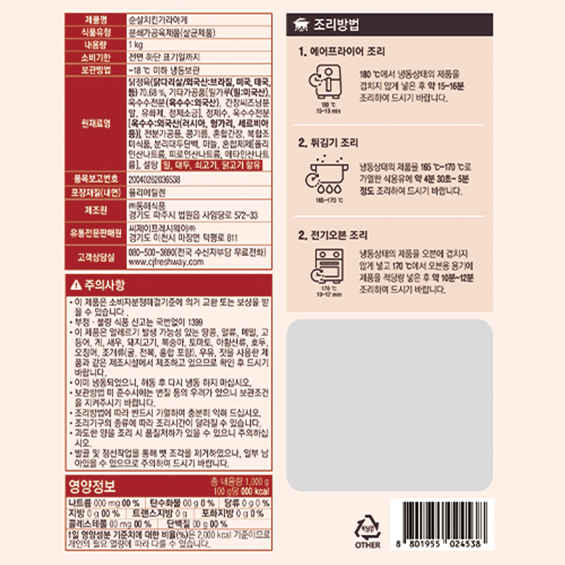 ♥첫구매♥이츠웰 순살치킨가라아게(1Kg/EA) 이미지