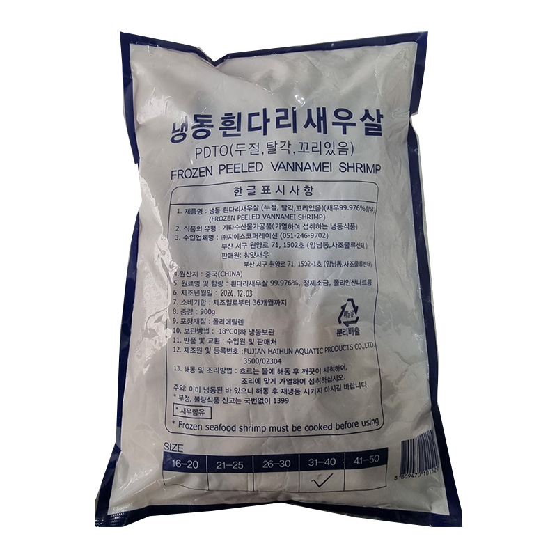 ♥수산특가♥ 생칵테일새우(꼬리 있는 새우 중국산 PDTO_31/40) 900g/EA