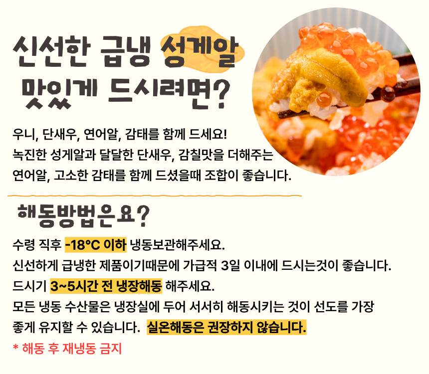 현지 특A급 최상급 성게알만 선별하여