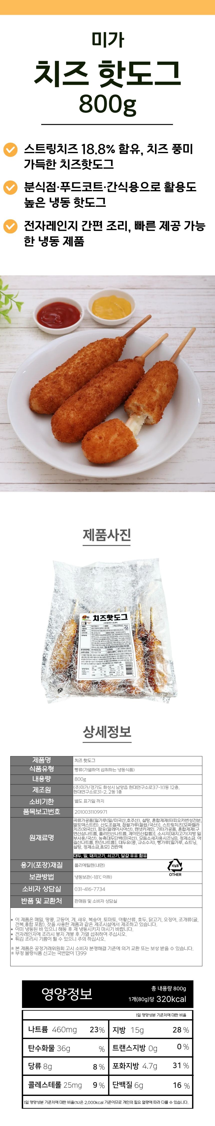 미가 치즈 핫도그 800g(80g*10개입) 치즈핫도그 이미지