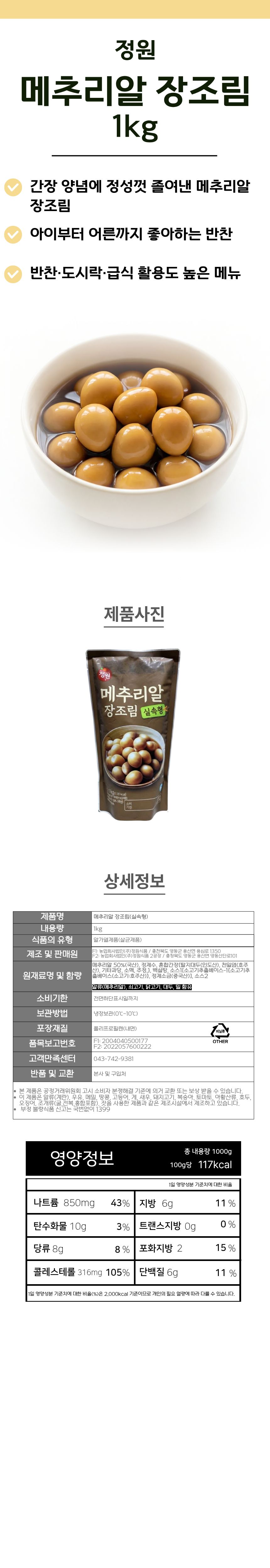 정원 메추리알 장조림 1kg (제한)