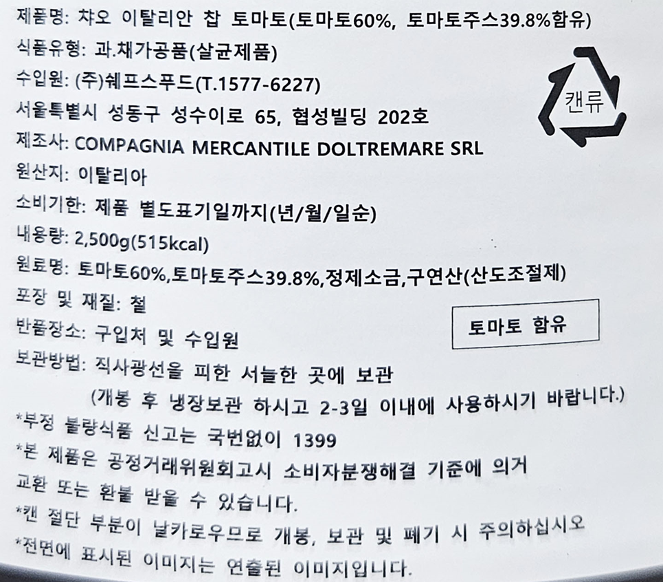 [신규] CIAO 차오 챠오 챱토마토 폴파 2.5kg 토마토소스 이미지