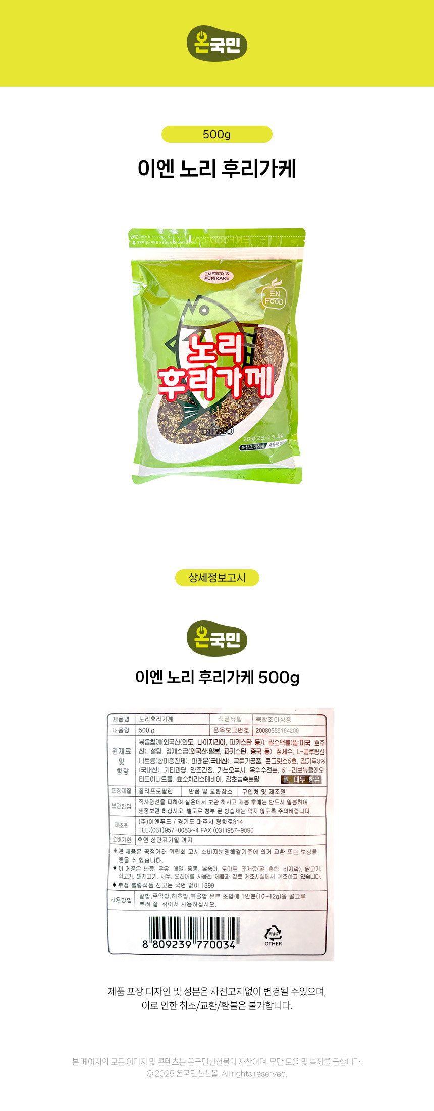 이엔 노리 후리가케 500g 이미지
