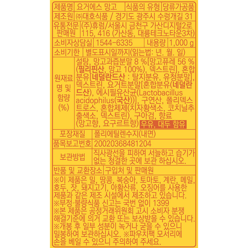아임요 요거S망고(1Kg/EA) 이미지