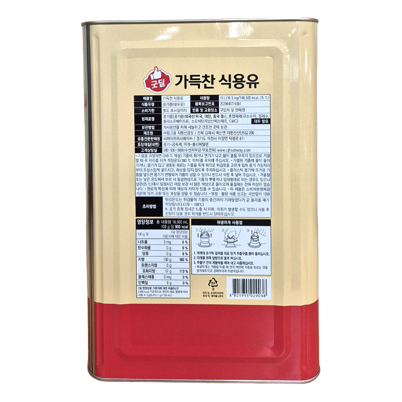 ♥첫구매♥ 굿딜 가득찬식용유(18L_콩식용유 16.5Kg/EA) 대두유 식용유