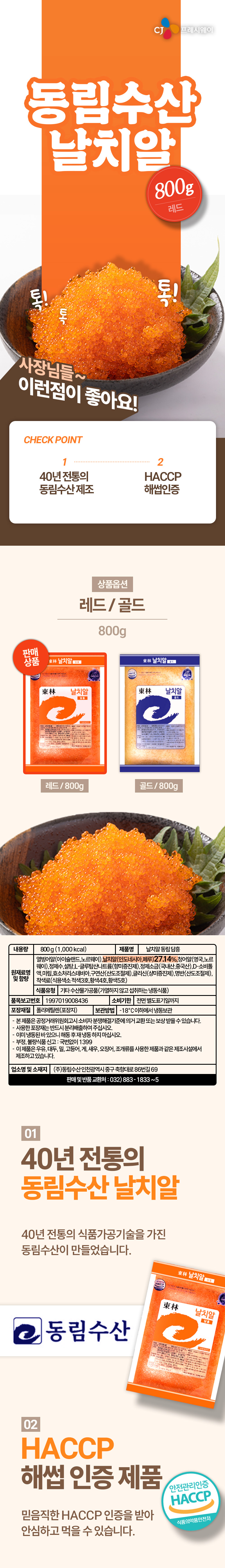 ★초특가★ 동림수산 날치알(레드 800g/EA)