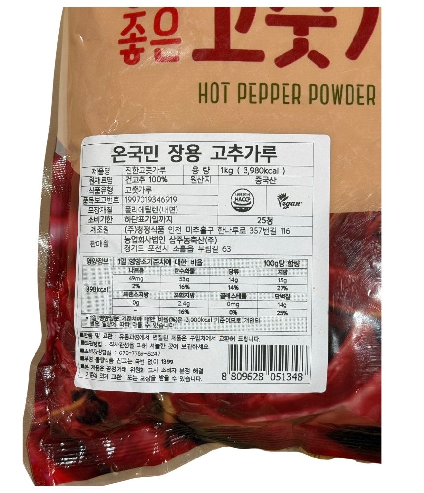 온국민 장용 매운맛 고춧가루 고운입자 중국산 1kg