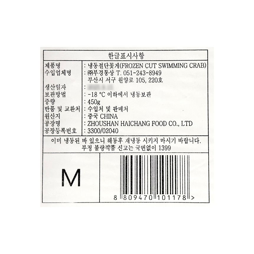⭐묶음특가⭐절단 꽃게 M 450g 냉동