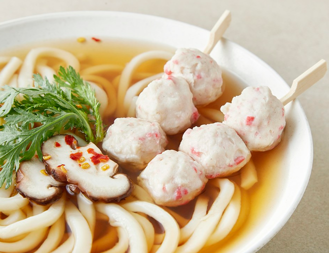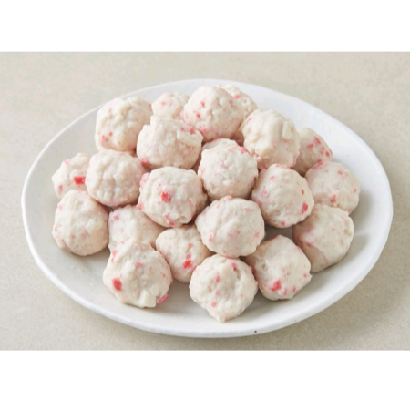 생선살이 들어간 반죽, 수리미로 만든 새우 피쉬볼이에요. 잘 치댄 반죽을 작고 동그란 공 모양으로 정형했어요. 탱글탱글하고 쫄깃한 식감과 고소한 풍미가 매력적이랍니다. 노릇하게 튀겨 드셔도 좋고, 샤부샤부나 훠궈의 재료로 활용하셔도 좋아요.
