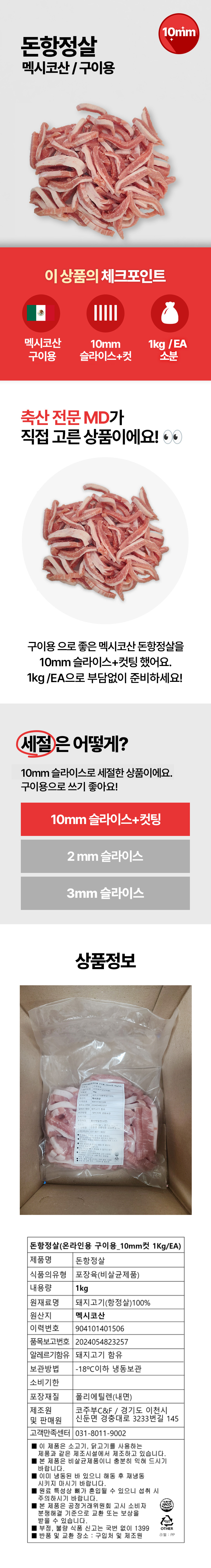 ★초특가★ 돈항정살 (수입 구이용_10mm커팅 1Kg/EA) 삼겹살 축육 할인 축산