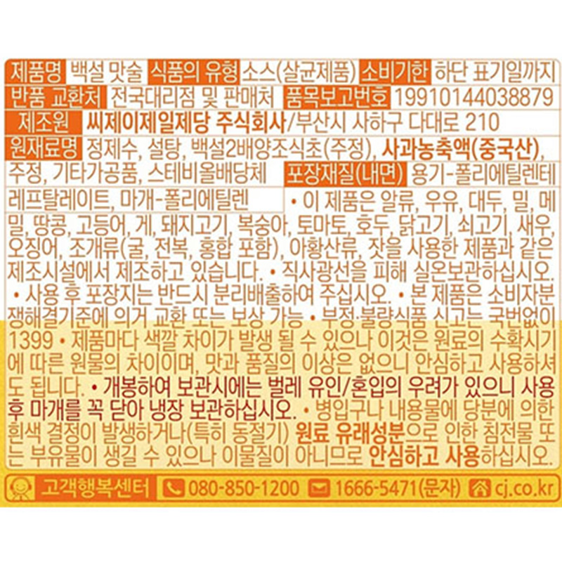 백설 맛술(1.8L 1.917Kg/EA)