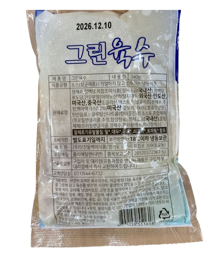 맛찬들 냉면육수 그린 340g 냉동 이미지