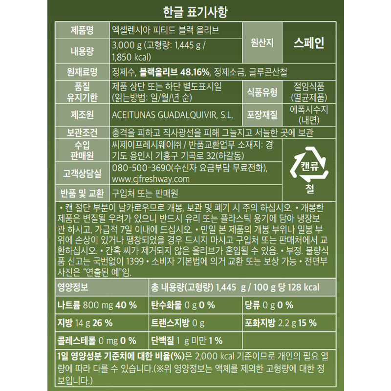 엑셀렌시아 올리브(블랙_피티드_홀 3Kg/EA)