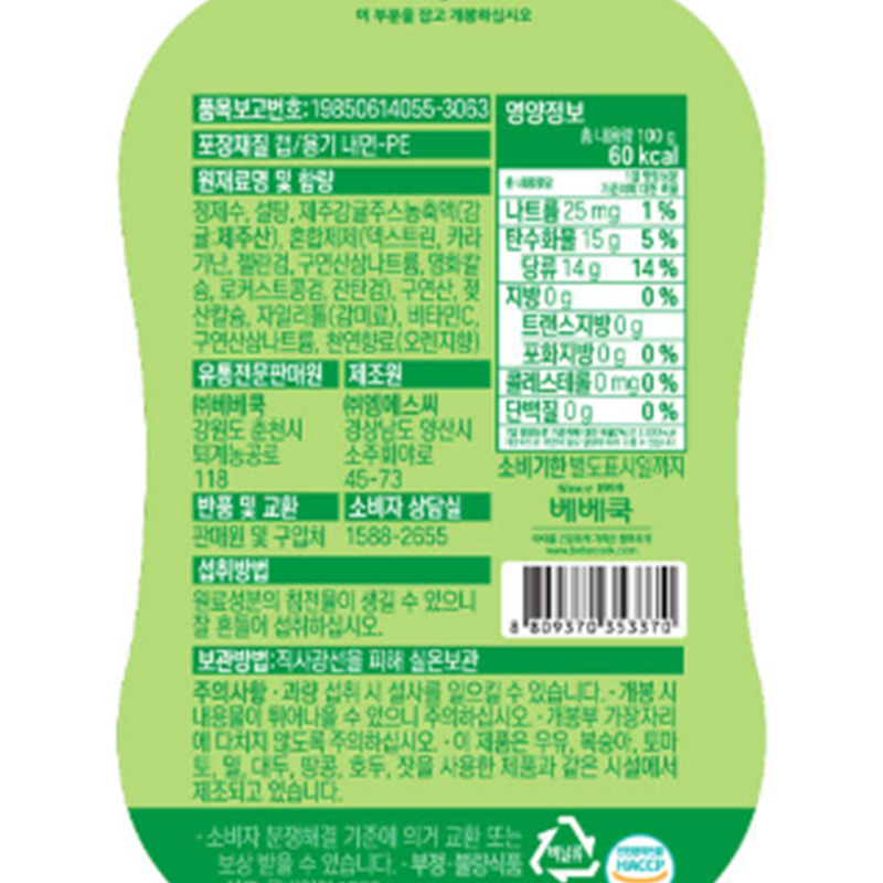 베베쿡 아이쭉쭉워터젤리(제주감귤_100ml 100g/EA)