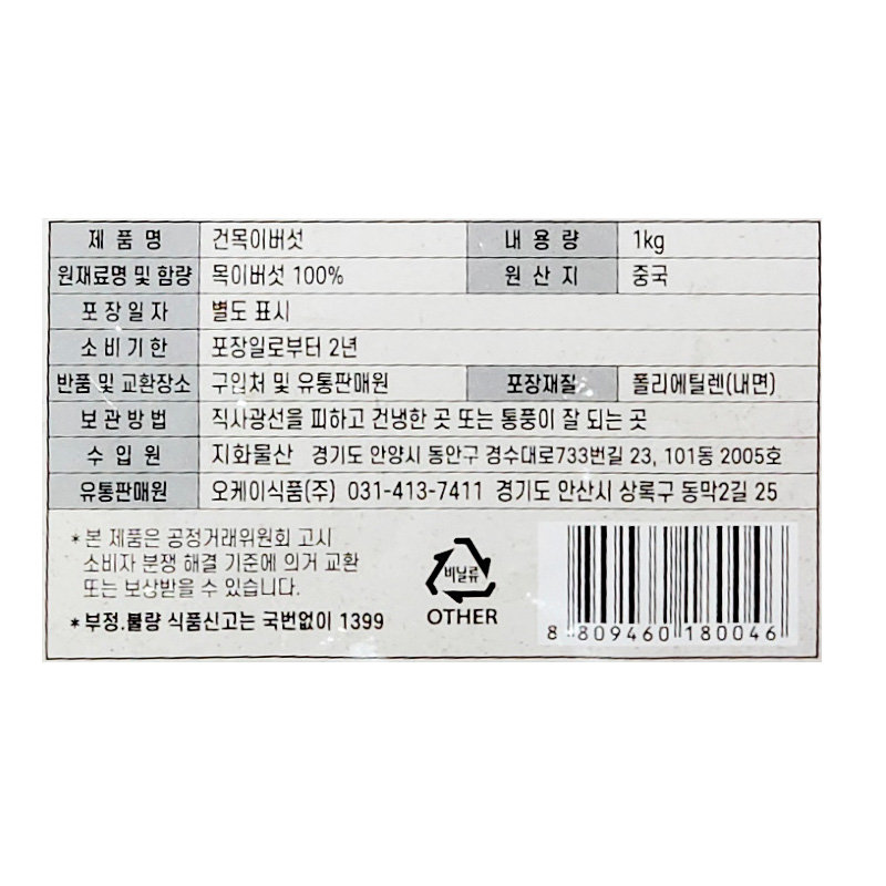 오케이식품 건흑목이버섯(1Kg/EA)