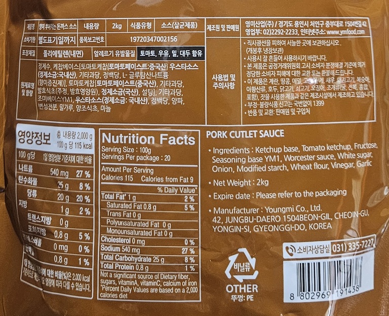 ★한정 초특가★ 영미 부어먹는 돈까스소스 2kg 돈가스소스