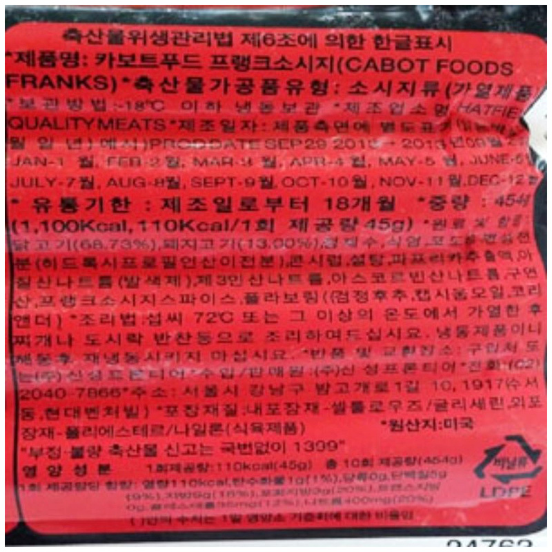 카보트 소시지(부대찌개용 454g/EA) 후랑크 부대찌개햄  소시지 햄 이미지