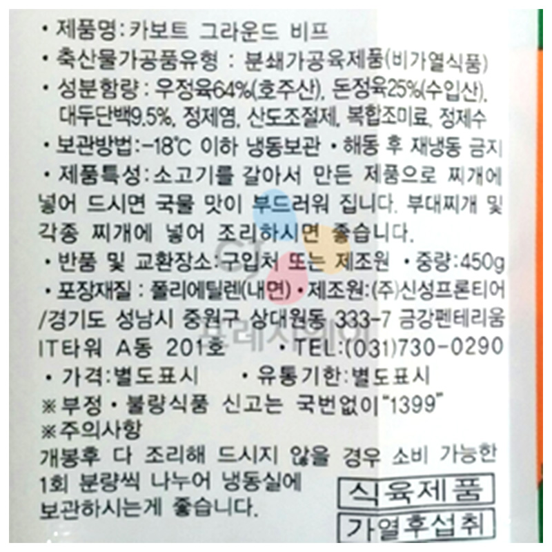 카보트 민찌(실속 그라운드비프B 450g/EA)