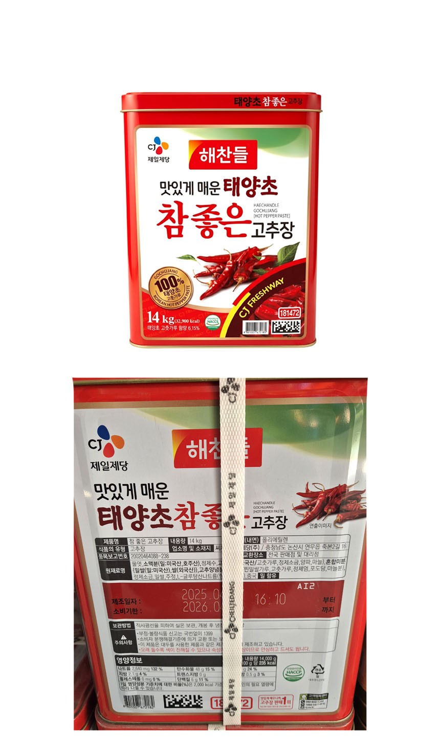 ★한정수량 초특가★ 해찬들 참 좋은 고추장 14kg [유통기한 : 26년 4월 16일] (제한) 이미지