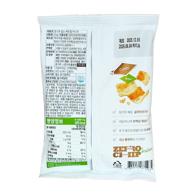 마이노멀 100%국산현미제로칩(어니언 55g/EA) 이미지