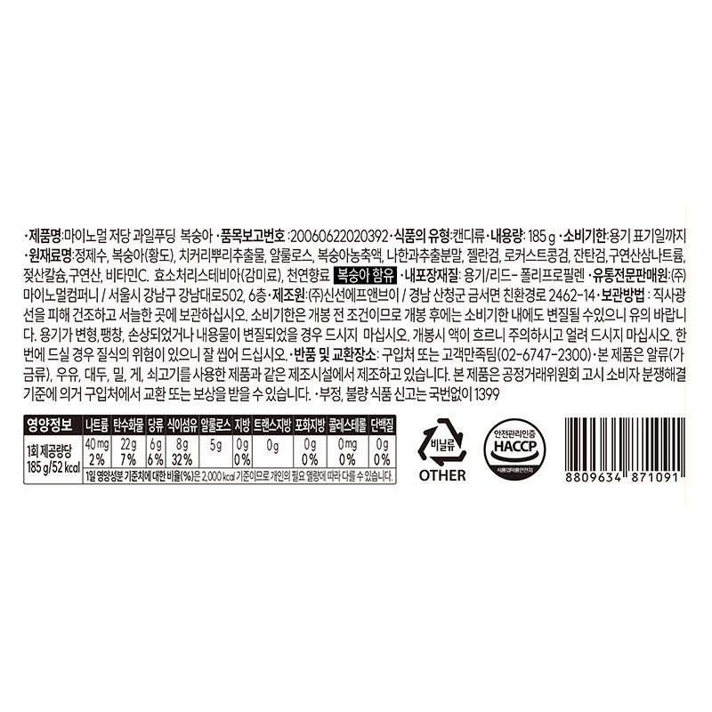 마이노멀 저당과일푸딩(복숭아_스푼미포함 185g/EA)