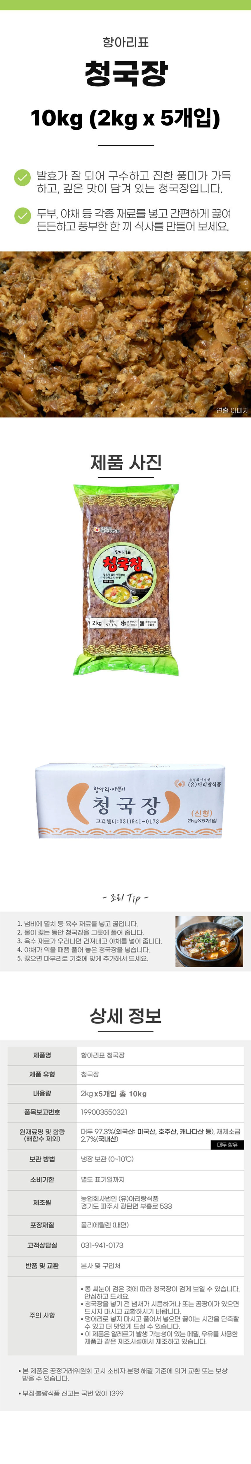 아리랑 대용량 항아리표 청국장 (2kg X 5개 ) 식당용 업소용
