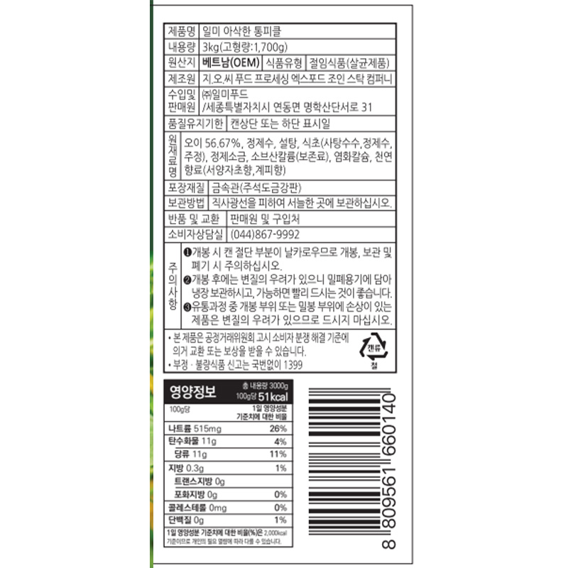 일미 통피클(슬라이스 3Kg/EA)
