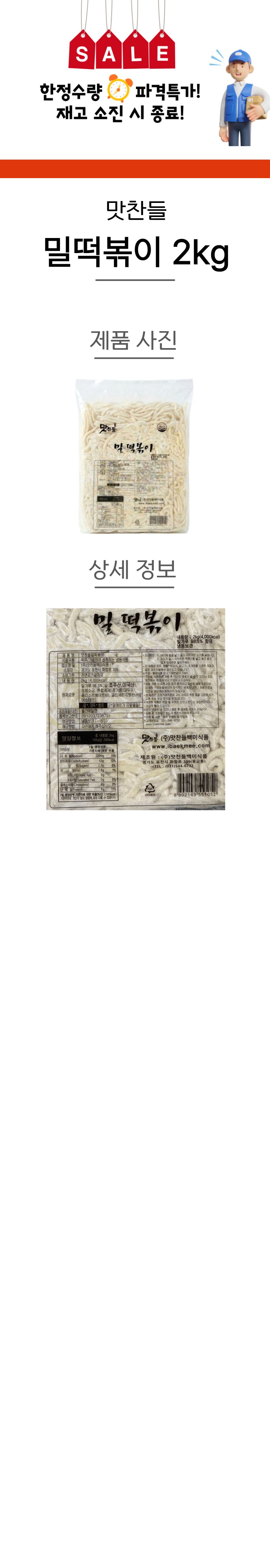 ★한정수량 초특가★ 맛찬들 밀떡볶이 2kg (제한) 이미지