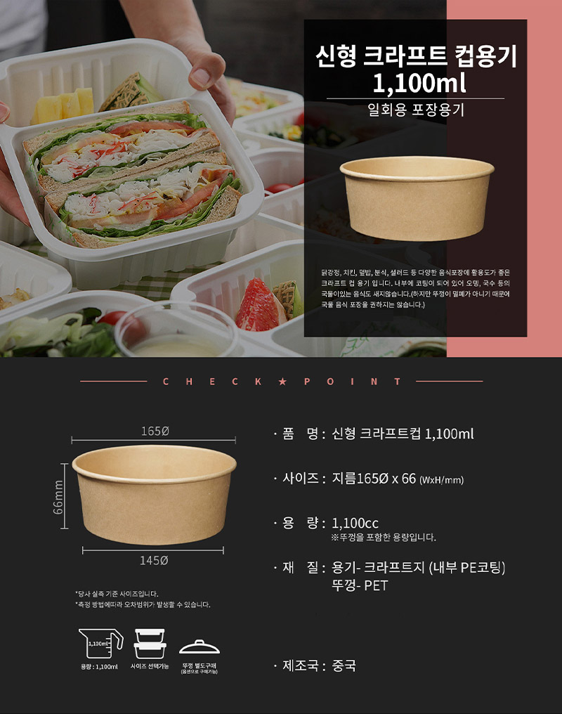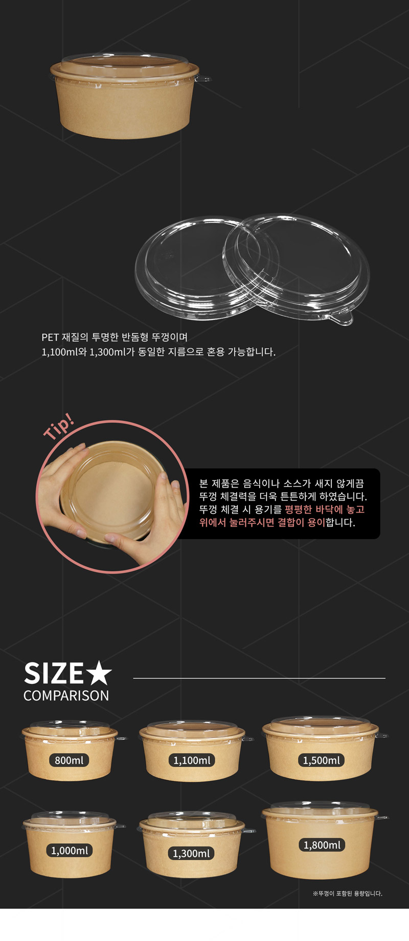원형크라프트용기세트(뚜껑포함_165Øx66mm_1100ml_100SET EA)