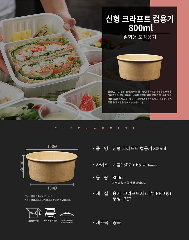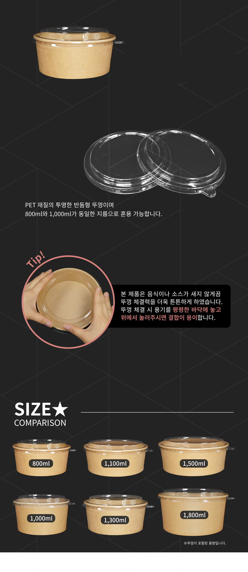 크라프트용기세트(원형_뚜껑포함_150Øx65mm_800ml_100SET EA)