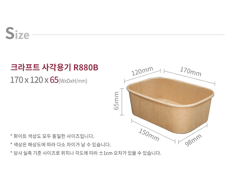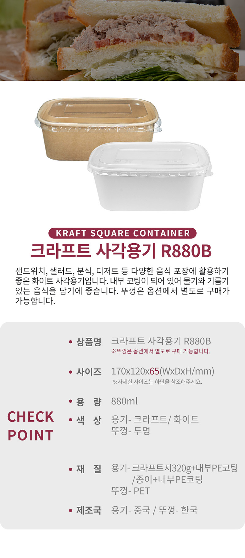 사각크라프트용기세트(뚜껑포함_170x120x65mm_880ml_100SET EA)