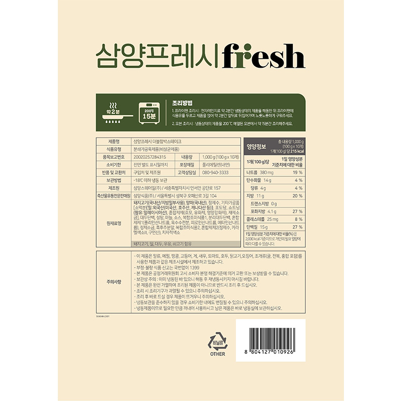 삼양 더블함박스테이크(100g*10입 1Kg/EA)