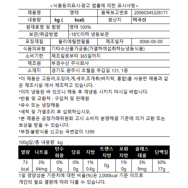 동태(굿픽_내장제거_50~70g/토막 3Kg/BOX)