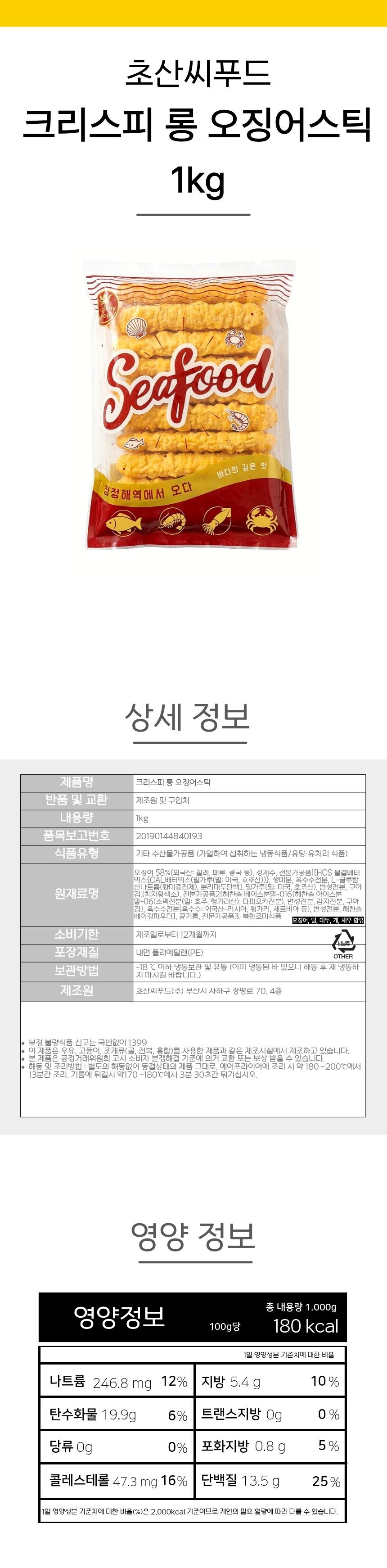 초산씨푸드 크리스피 롱 오징어스틱 1kg 오징어튀김 이미지
